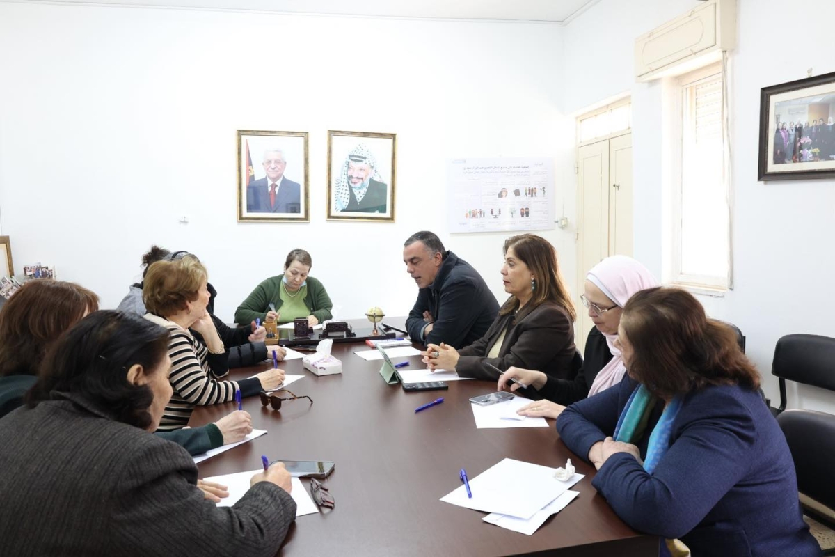 عقدت وزيرة شؤون المرأة، أ. منى الخليلي، اليوم، اجتماعاً تشاورياً مع الاتحاد العام للمرأة الفلسطينية برئاسة انتصار الوزير رئيسة الاتحاد، في مقر الاتحاد، بحضور وكيلة وزارة شؤون المرأة بثينة السالم ود. حنا نخلة مستشار الوزيرة للشؤون الخارجية، وبمشاركة عضوات الهيئة الادارية وعضوات الاتحاد وذلك لبحث آفاق التعاون المشترك ومناقشة ملفات العمل ذات الاهتمام المشترك خلال 2026.